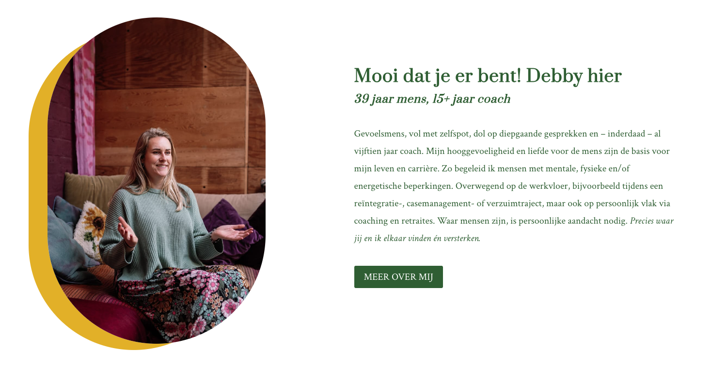 Debby had al een tekstuele basis staan, maar deze was volledig gefocust op particulieren. Haar primaire focus? De zakelijke wereld. Hup, weg met die oude teksten! Tijd voor nieuwe copy die de juiste doelgroep raakt én Debby’s krachten en karakter ‘vangt’. Een basis die welkom heet, overtuigt en haar menselijke kern vangt.
