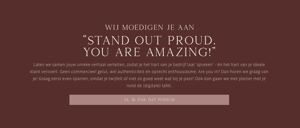 Levien is een vrouw én ondernemer naar mijn hart. Niet alleen onwijs aardig en toegankelijk, maar ook als foto- & videografe ontzettend gedreven in haar vak. Met een scherpe focus op passievolle ondernemers, heeft ze een helder doel voor ogen. Jouw unieke verhaal een podium geven. Altijd op een menselijke, positieve, krachtige en professionele manier. Want: ‘stand out proud. You are amazing!’.