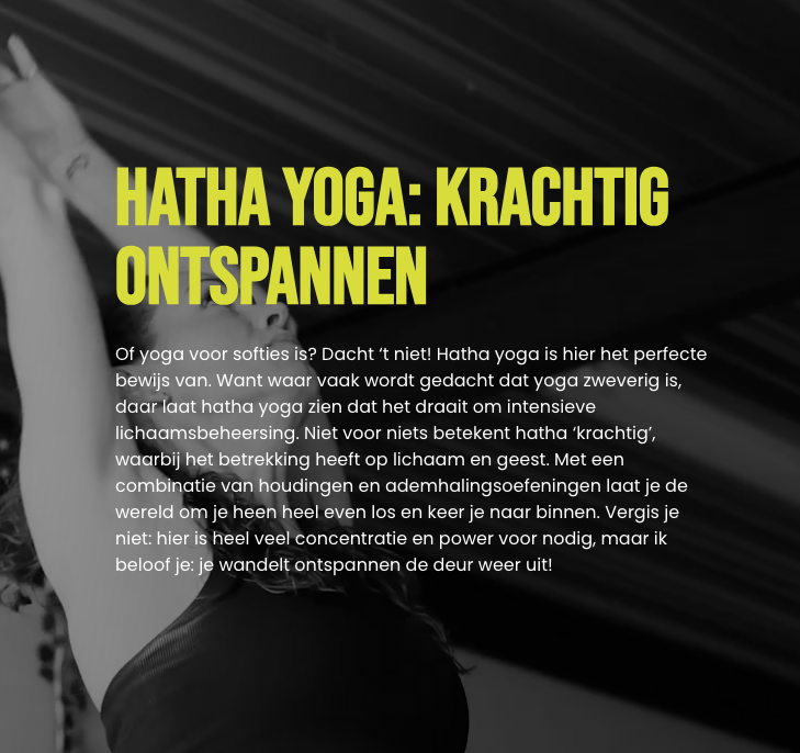 Een rustige basis, maar wel met een stoere en sportieve tweak. Teksten en design zonder bullshit, met pit en persoonlijkheid. Precies zoals Melissa zelf is – en haar lessen dus ook zijn.